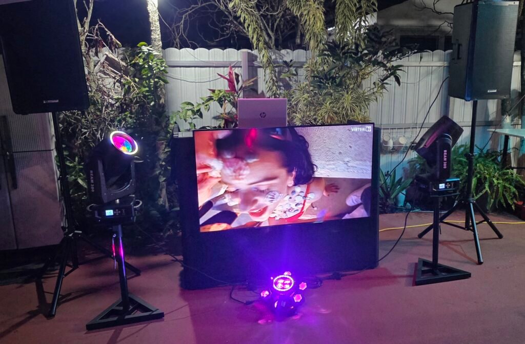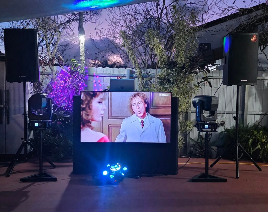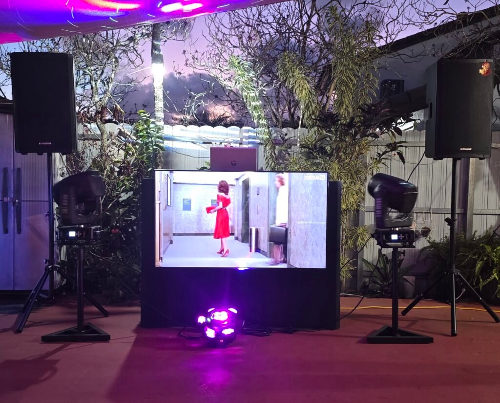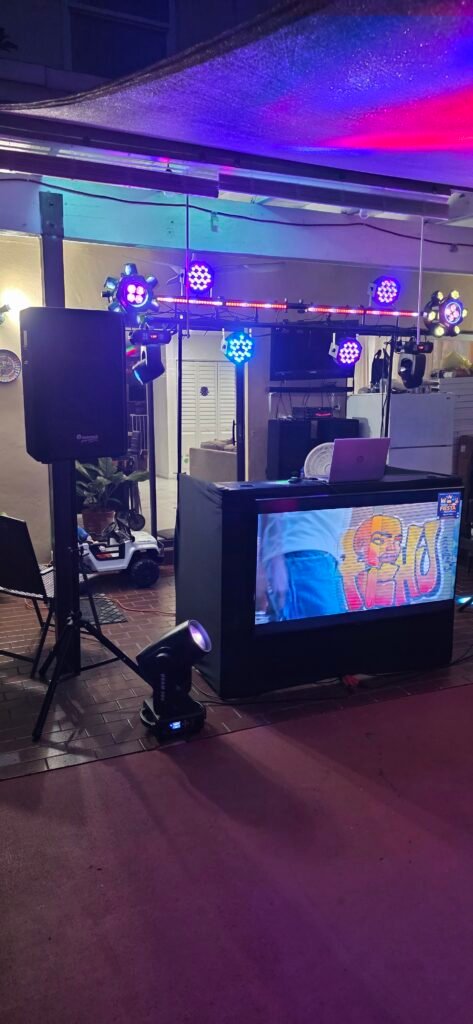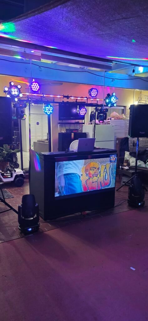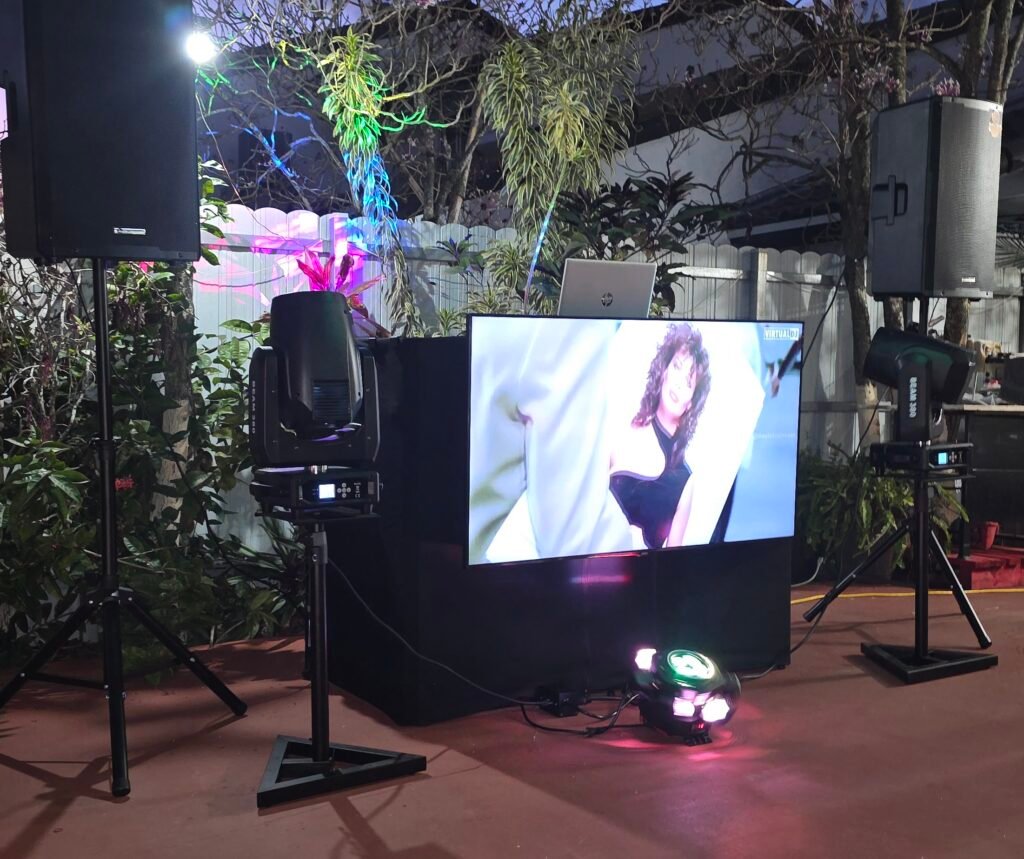 Equipo de audio y sonido con dj, luces inteligentes, efectos especiales y pantalla led